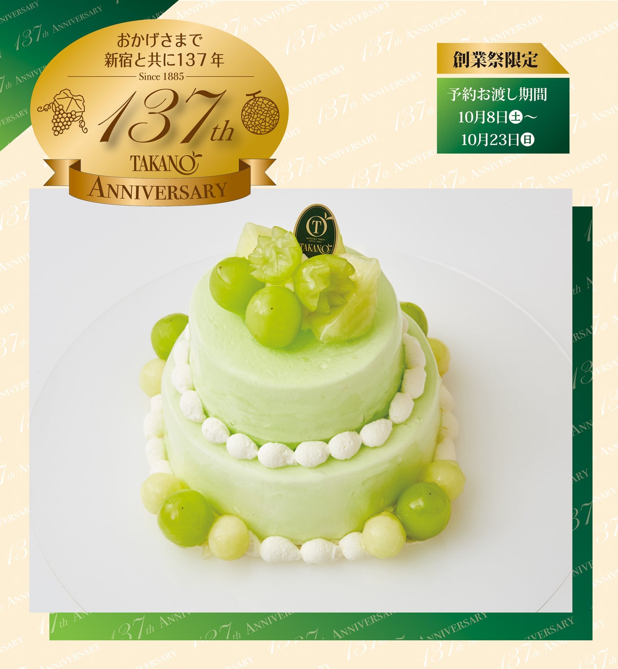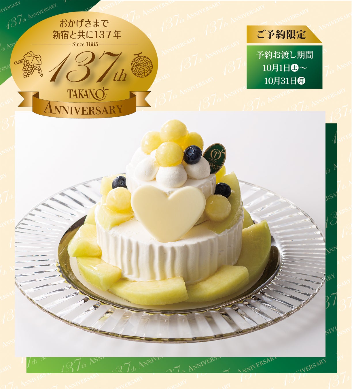 新宿高野は、創業137年を記念して、フルーツ専門店として縁(えにし)のあるマスクメロンを使用したデコレーションケーキ「マスクメロンアニバーサリー」(予約限定)と「137thアニバーサリー」(新宿本店限定)を販売する。