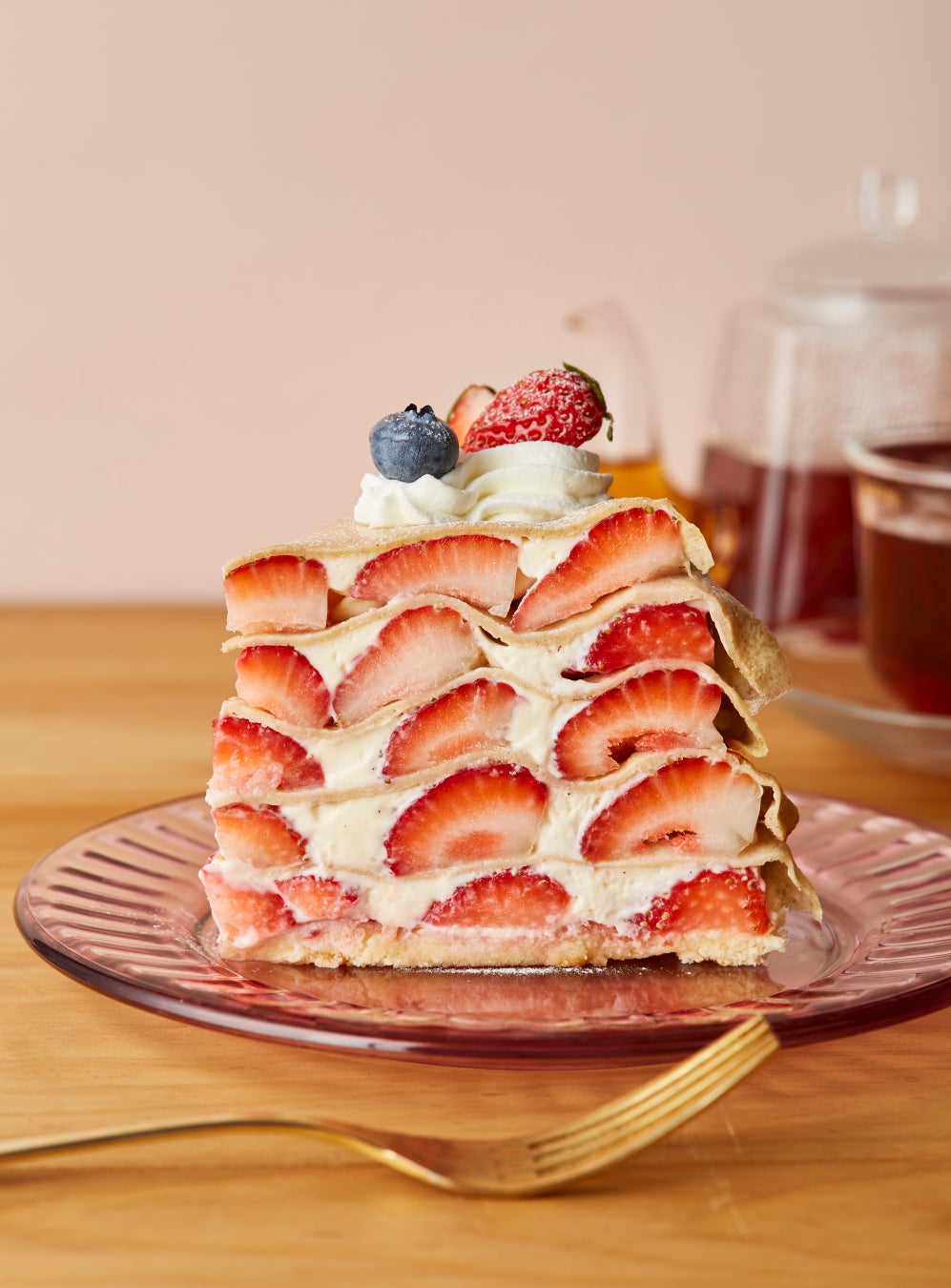 東京・大阪・横浜・静岡で展開する「アフタヌーンティー・ラブアンドテーブル」は12月26日より、毎年冬季に展開する5層仕立ての「苺のミルクレープ」、紅茶香る「ストロベリーミルクティーのミルクレープ」など期間限定のミルクレープを順次発売する。