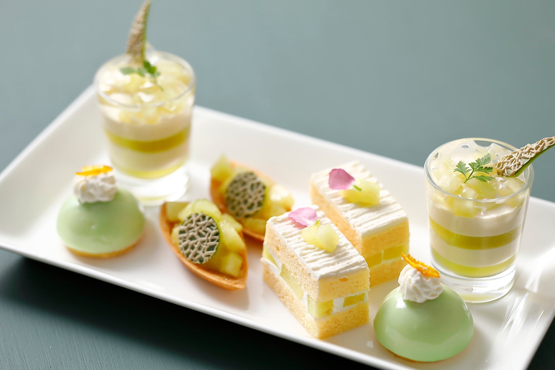 春から夏にかけ、毎年メロンをテーマに提供しているアフタヌーンティー。2023年はメロン好きの方に何度も足を運んでほしいという思いから、全2弾で実施。提供期間中の6月中旬からは内容をリニューアルして再登場。キュートなフォルムのスイーツから爽やかな季節を思わせるセイボリーまで、一つ一つに果実味あふれるメロンのおいしさが凝縮されている。