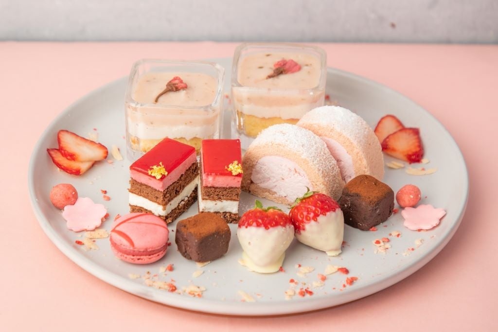 「桜あんのブランマンジェ」や「桜とチーズの求肥づつみ」など桜をモチーフに取り入れた手作りの和洋折衷スイーツの数々にプラスして、ローストビーフのブルスケッタやポテトフライなど塩気のあるフード&スナックも揃える。