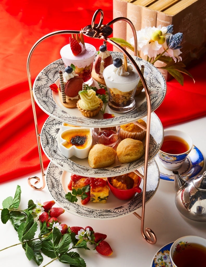 今春は2種類のティーパーティープランを用意。ディナータイムは、イースターをテーマにした「アリスのイースターハイティー」。そして、「不思議の国のアリス」の続編として編まれた「鏡の国のアリス」から現代で世界的ヒットを記録する映画に展開され、キャラクターイメージが定着した2人の女王の対決シーンをイメージした「アフタヌーンティー 〜赤の女王と白の女王の対決〜」。ストーリーの故郷・英国のティータイムさながらのお洒落で優雅な時間を幻想空間で堪能できる。