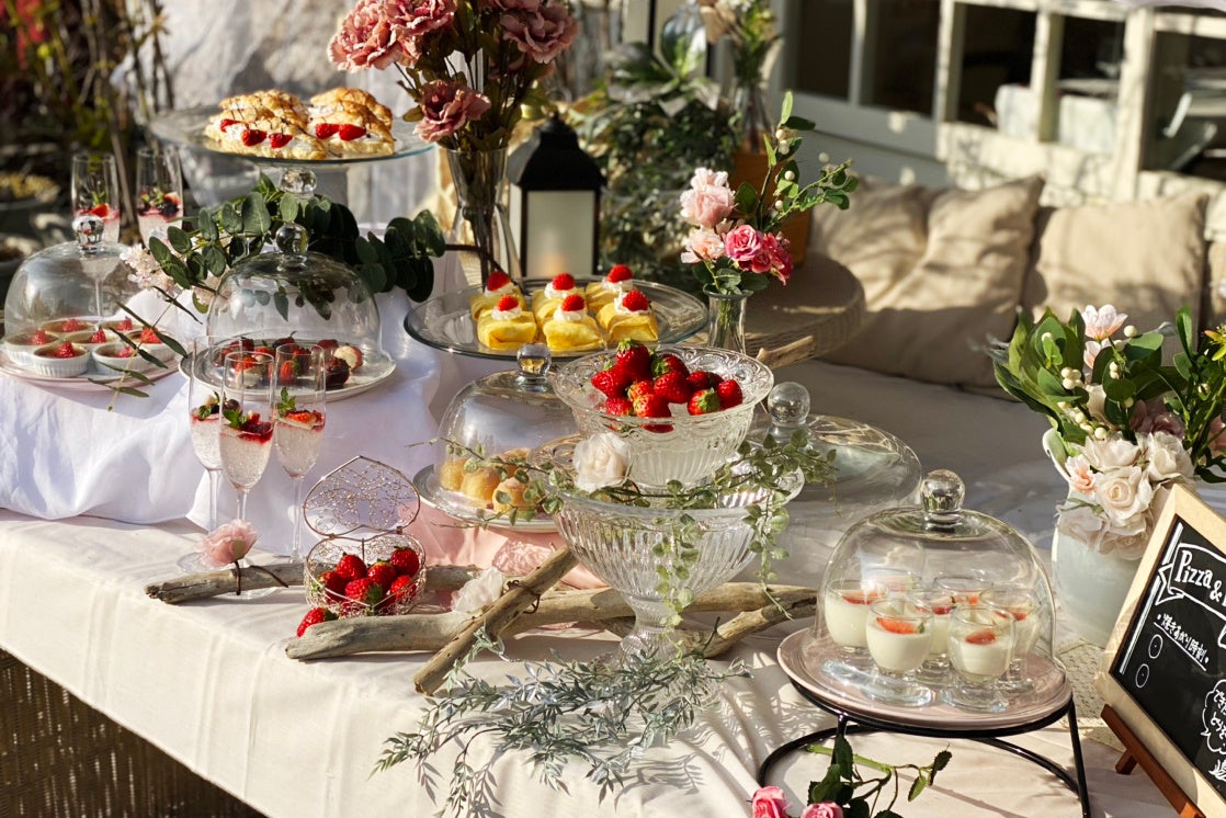 広島・八丁堀のガーデンレストラン「HIROSHIMA2016 RESTAURANT UNDER THE SKY(ヒロシマニイゼロイチロク レストラン アンダーザスカイ)」は3月1日~5月7日、「ストロベリースイーツビュッフェ ~屋上テラスでストロベリーパーティー~」を開催中だ。