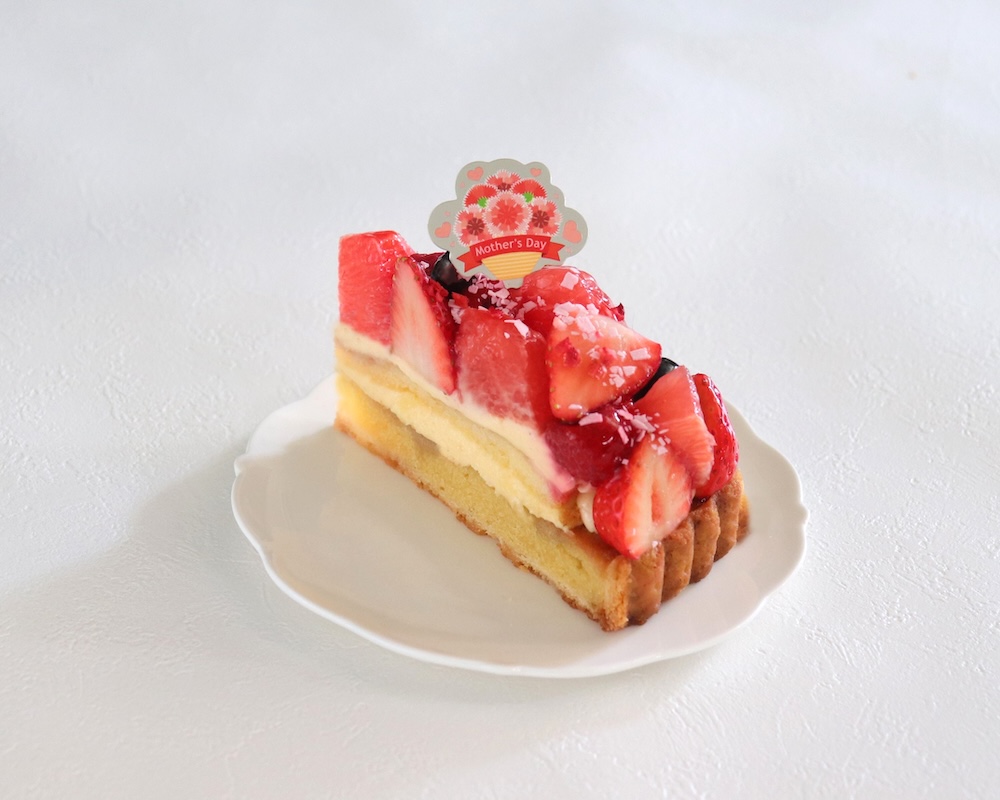 5月10日〜5月11日販売する店舗限定「メルシー・マム」は、センターにベリージュレをサンドした爽やかでジューシーなショートケーキだ。