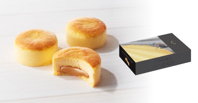 「キャラメルフルムーン」は半生ケーキタイプのお菓子。しっとりしたケーキ生地とバランスの口どけの良いキャラメルクリームが特徴だ。「キャラメルフォンダンフロマージュ」は、なめらかなキャラメルクリームが合うチルドタイプのチーズケーキ。温めると、一層なめらからなキャラメルクリームが味わえる。