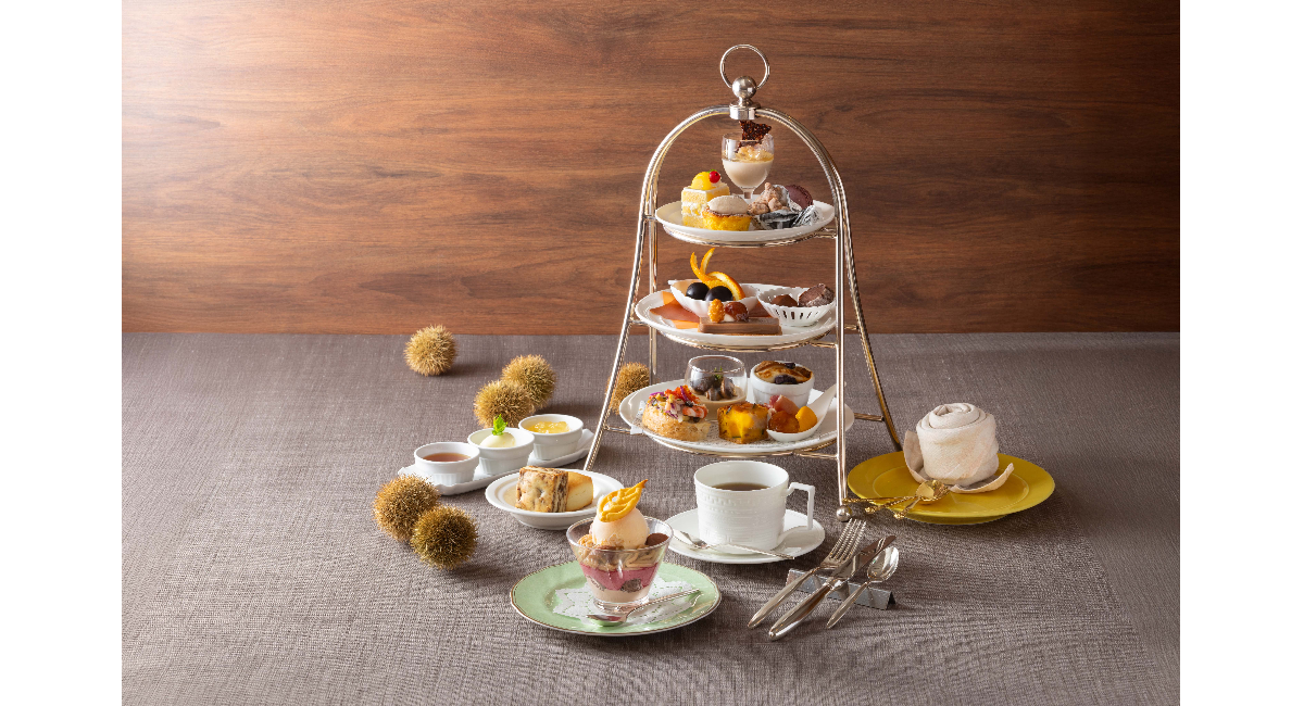 栗をはじめ、カボチャや柿など秋の味覚をふんだんに取り入れたメニューをお一人おひとり専用のティースタンドでご提供する「ソマーハウス」のアフタヌーンティー。
