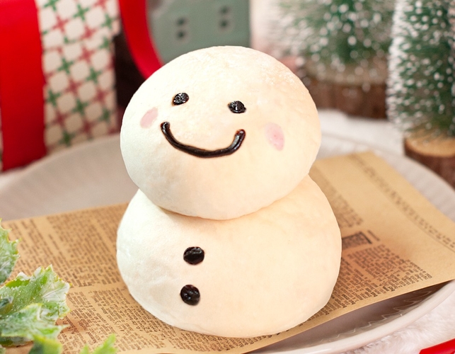 商品特徴:冬の訪れ!雪だるまのスイートパン。頭にチョコレート♪お腹に北海道生乳使用のカスタードクリームを、それぞれ詰めました。