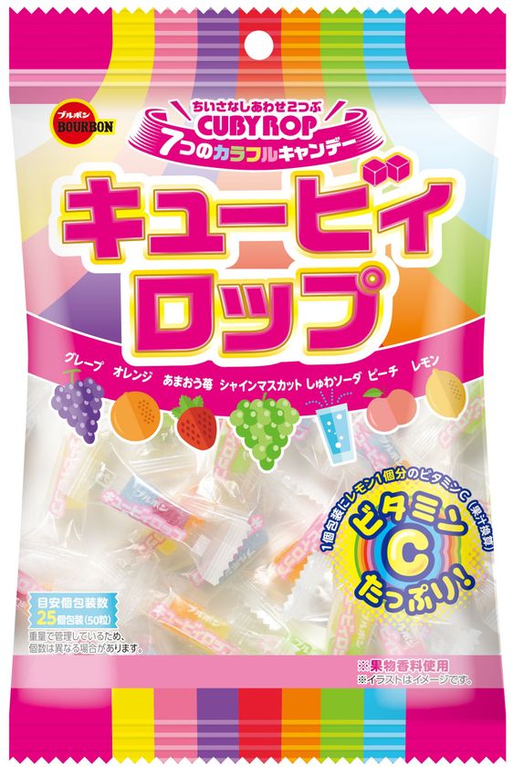 キュービィロップは当社のロングセラーキャンデーとして、これからも皆様にカラフルなおいしさをお届けしてまいります。