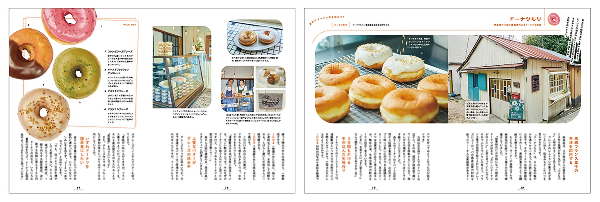 関西ドーナツ旅/札幌/福岡/沖縄/東京ドーナツ散歩/あの街に行ったらこのドーナツ/老舗パン屋さんのドーナツ/植物性食品で作った極上ドーナツ/大豆系ドーナツはやさしい味/チョコレートドーナツBest3/ オールドファッションBest3/食事系ドーナツ/クリームドーナツ……ほか