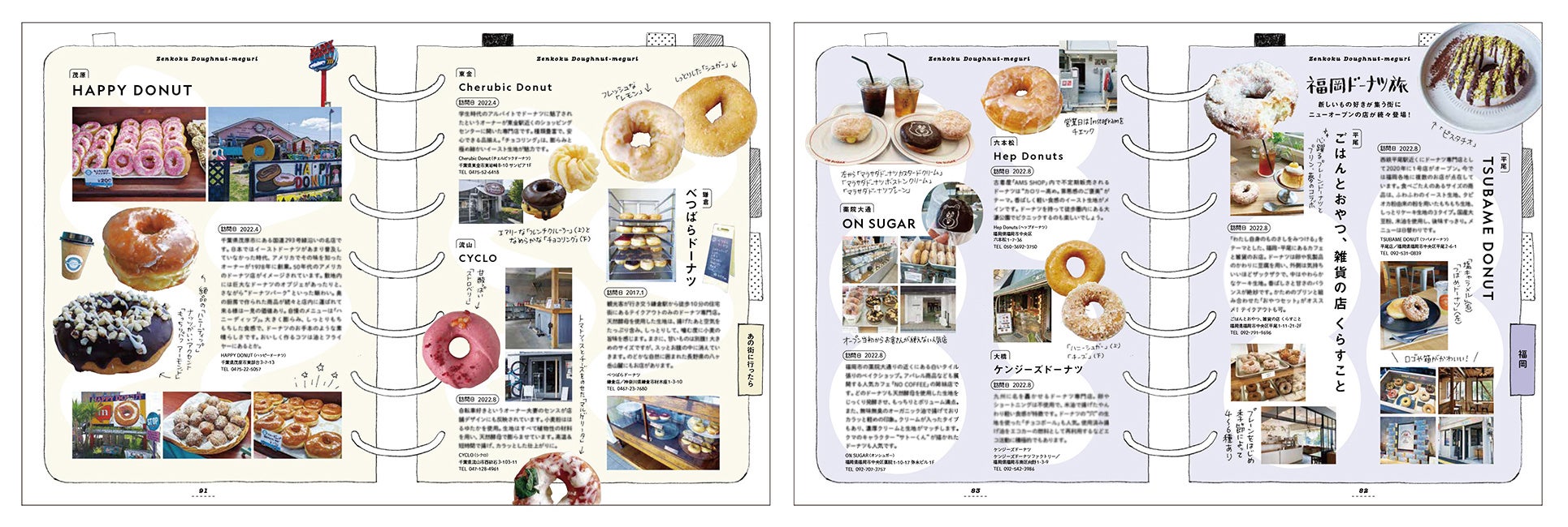 およそ10年前からドーナツの食べ歩きを開始して以来、年間500種類を食べるというイラストレーターでドーナツ探求家の著者・溝呂木一美(みぞろぎ・ひとみ)さんが、全国から選りすぐりのドーナツ&ドーナツ店(140軒)を披露。「第三次ドーナツブーム」のトレンドを牽引する人気専門店から、長年地元で愛されるお店まで、著者が自らの足で食べ歩いた名店を解説する。