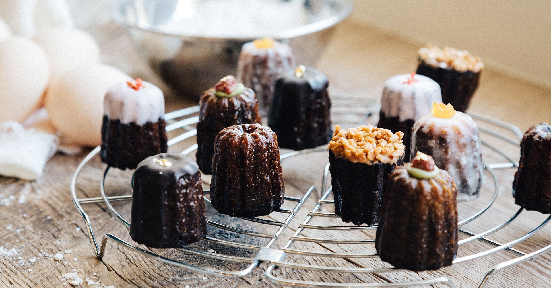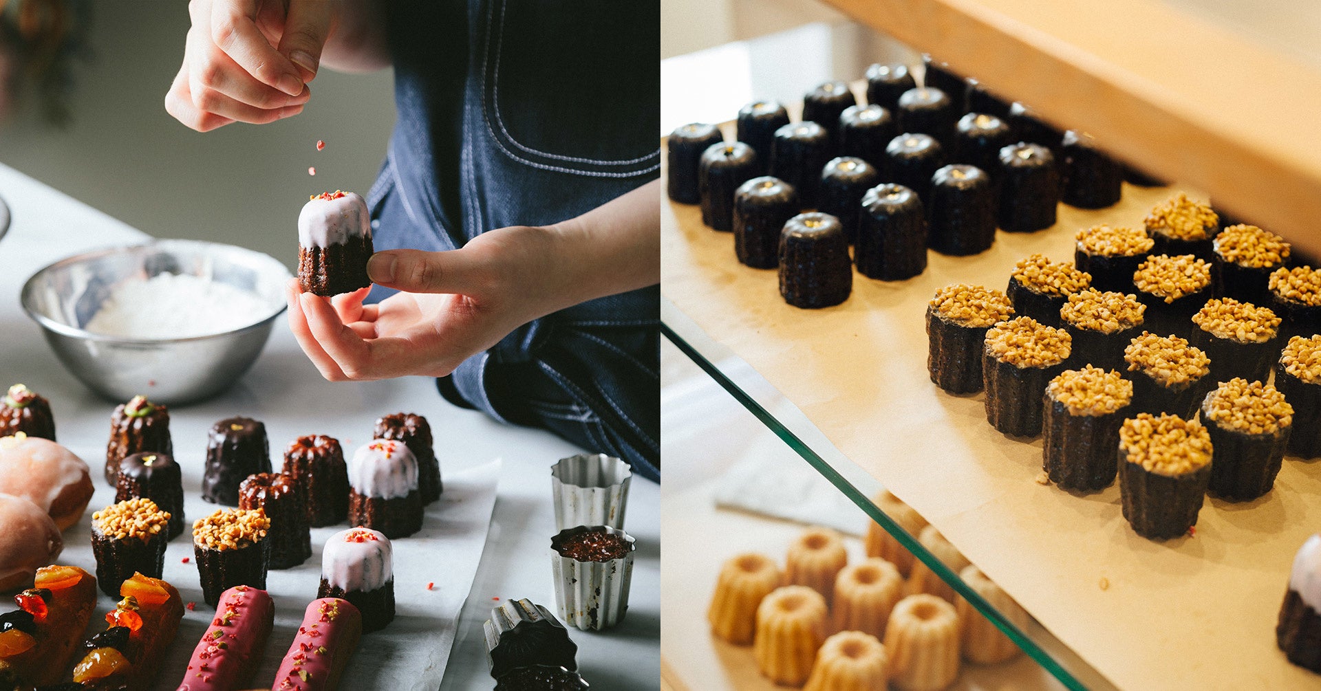 もっとも注力している商品は、しっかりと寝かせた生地を小さめの金型でカリッと焼き上げた全8種のカヌレ。ひと口サイズのカヌレをリーズナブルな価格で取り揃える。