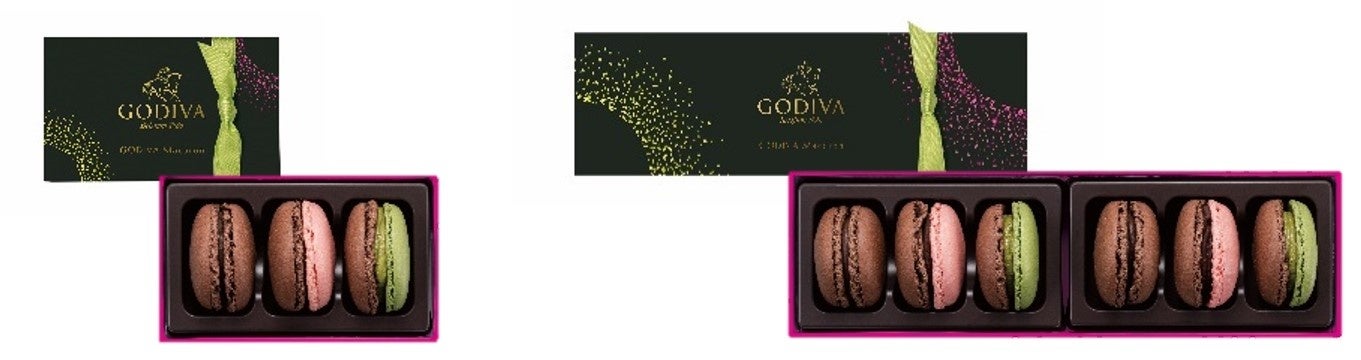 今回の焼き菓子は、3種類の限定フレーバーを詰め合わせた、サブレショコラ誕生10周年を祝した特別なアソートメント「サブレショコラ デザート」および「ミルクチョコレート」「桜」「抹茶」「レモン」の4種類のフレーバーをカラフルに詰め合わせた「マカロン & ショコラ」、そしてゴディバがチョコレートの味わいにこだわって手がけたマカロン生地で生ショコラを挟んだ「ゴディバ マカロン」を提供。そのほか「サブレショコラ 桜」や「スプリング フィナンシェ コレクション」、「バームクーヘン オ 桜」などを揃える。