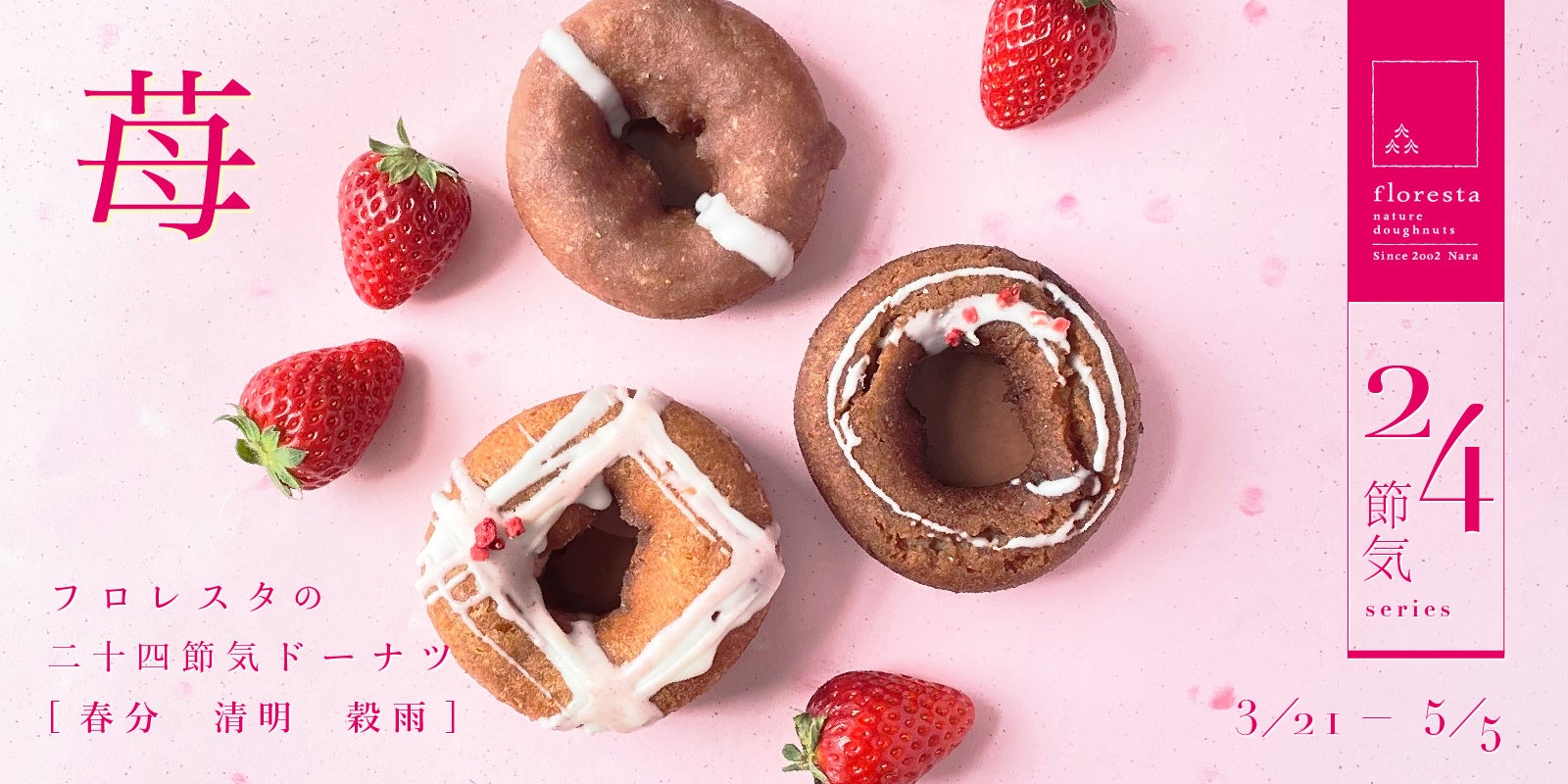 全国展開する自然派ドーナツ専門店「フロレスタ」は3月21日〜5月5日、旬を味わう二十四節気ドーナツ「苺」を販売スタートしている。