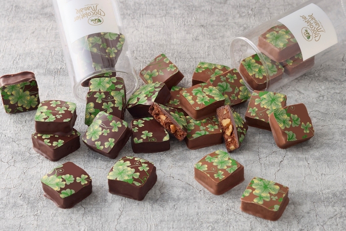 クルミたっぷりのブラウニーを二度焼きして”カリッサクッ”とした食感に仕上げ、マサールオリジナルチョコレートでコーティングした人気商品です。ホワイトデー限定のクローバーデザインでご用意しております。