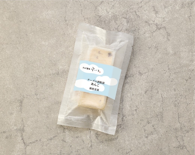 北海道産のまろやかなクリームチーズを吟醸酒粕とみりん粕を合わせた床で漬け込み、風味豊かに仕立てたチーズの酒粕漬。そこに「ぎんざ空也 空いろ」のこだわりのあんを混ぜ込みました。
