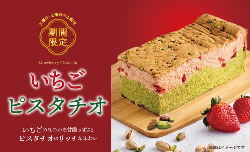 台湾カステラ専門店「名東」は吉祥寺駅にて、12月3日より新フレーバーのいちごピスタチオを展開スタートする。価格は税込み1566円。