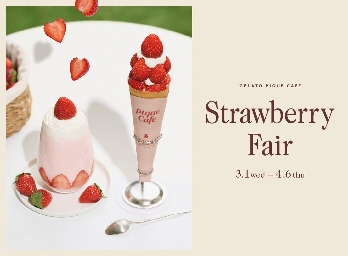「gelato pique cafe(ジェラート ピケ カフェ)」は3月1日〜4月6日、全店舗で「ストロベリークレープ」および「ストロベリースムージー」を数量限定で提供する。