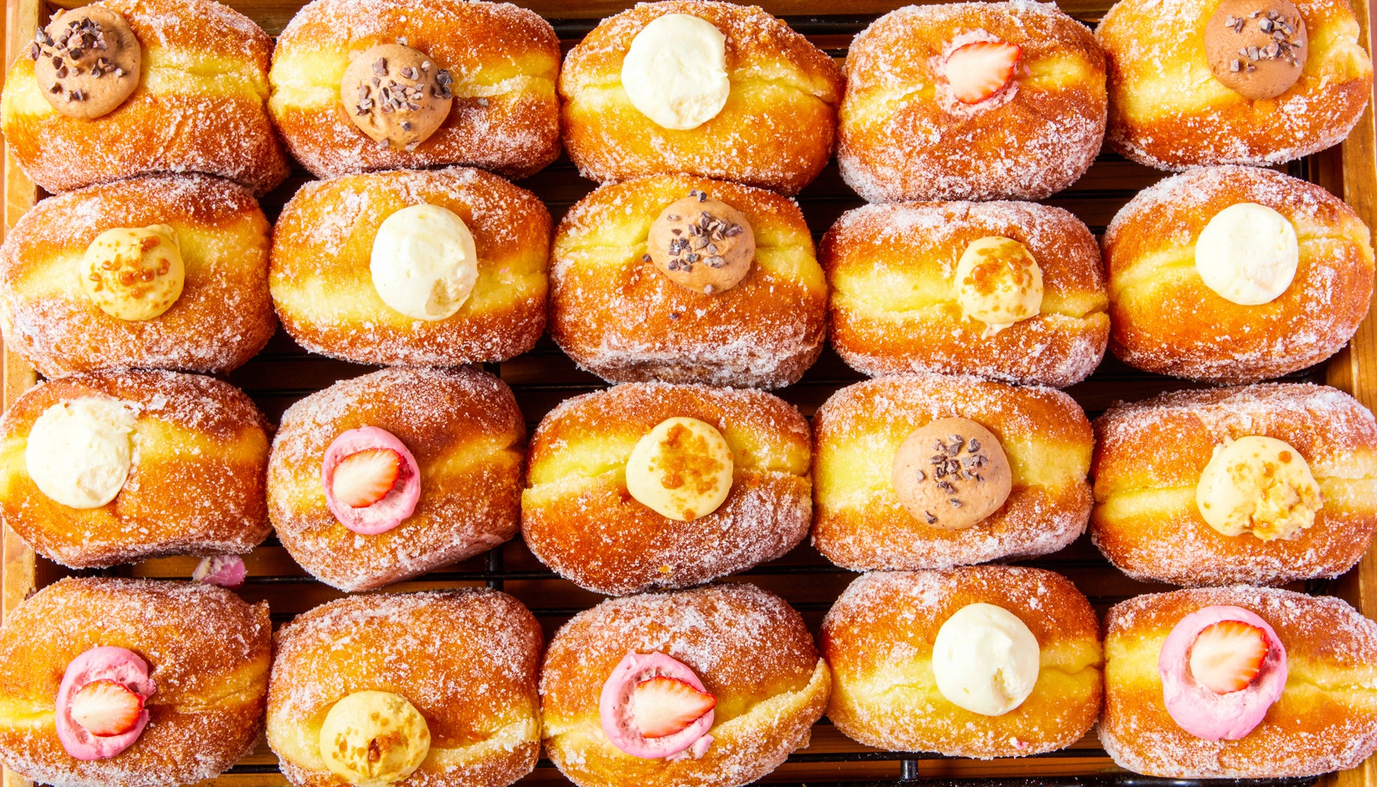 ボンボローニは、伊トスカーナ州生まれのスイーツパン。発酵生地の揚げドーナツに、クリームをたっぷり詰めている。語源は「丸い形の爆弾」(bomb)と「小さい」を意味する複数形が合わさったことから。発酵時間を長くして、普通のドーナツよりもモチモチ、フワフワの食感が特徴。