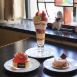 店内で「モンプディング」、「カシスのレアチーズケーキ」、「ストロベリーパフェ」をいただいた。