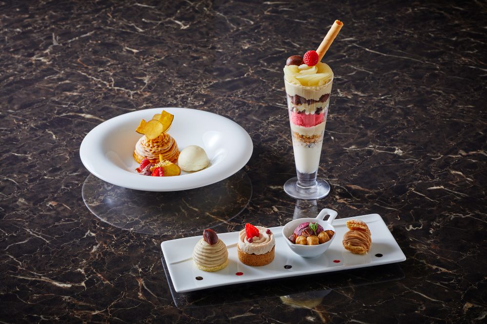 さらに、和栗のモンブランやマロンクリームタルト、モンブランパイ、カシスシャーベットの4種を1度に味わえる「モンブラン プティ アソート」も揃い、秋の魅力をたっぷりと味わえる栗尽くしのラインアップに仕上げている。
